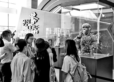 观众在第二十一届中国国际动漫节现场参观《黑神话:悟空》主题展陈。新华社发